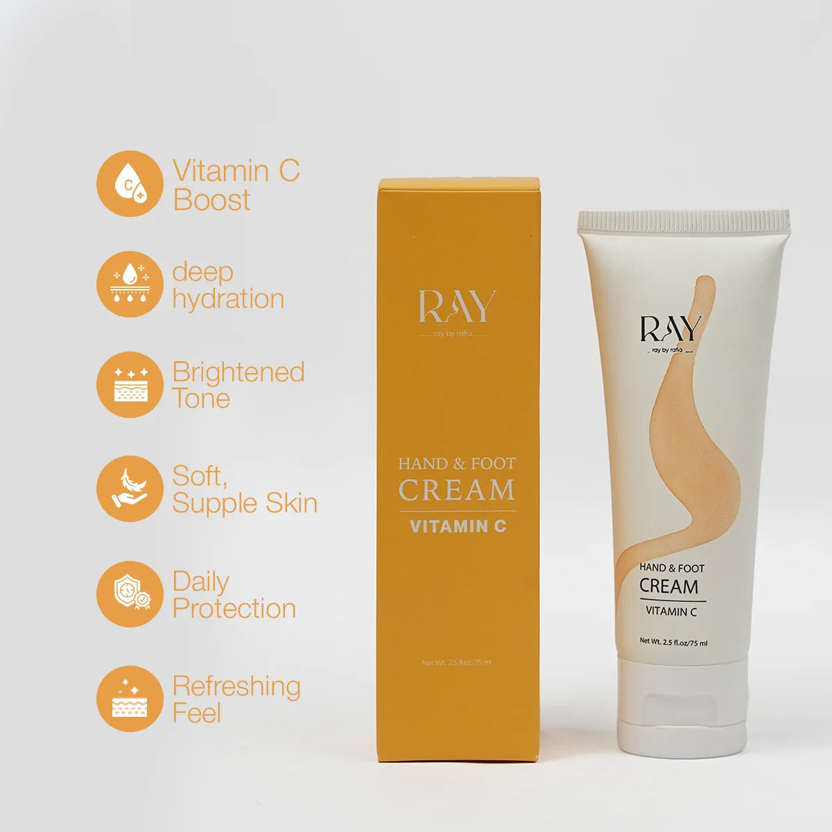 Give your hands and feet the glow they deserve with this brightening Vitamin-C infused cream. Its lightweight, fast-absorbing formula deeply hydrates, softens rough areas, and helps fade dullness and dark patches. Powered by Vitamin C, it boosts radiance, evens out skin tone, and keeps your skin looking fresh, smooth, and healthy all day. Perfect for daily use to maintain clean, bright, and well-nourished hands and feet.