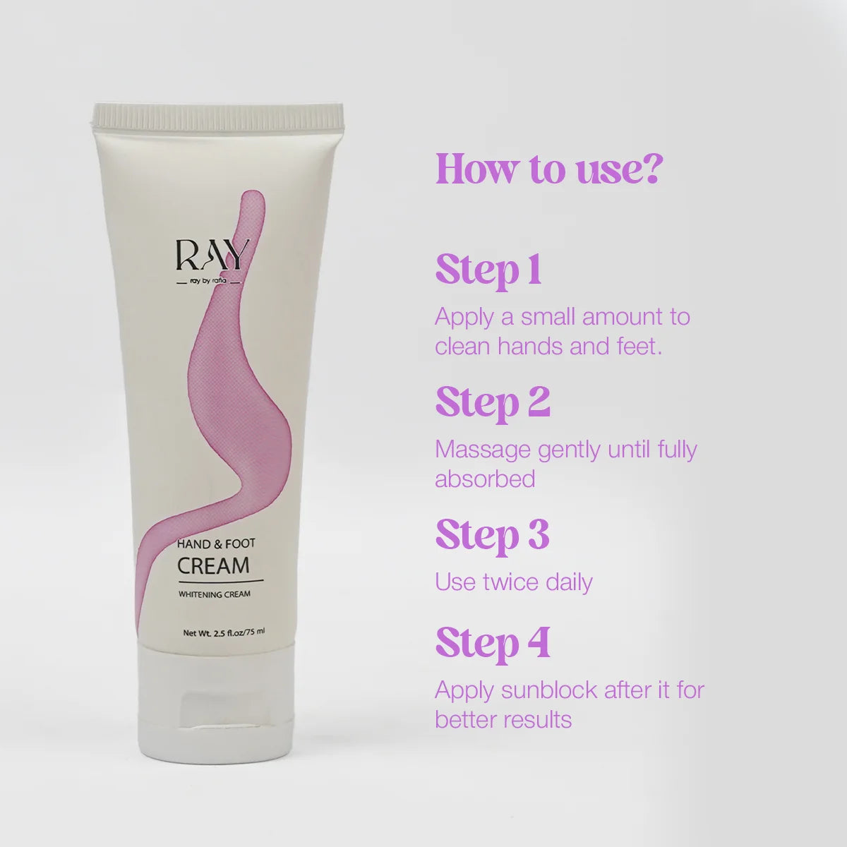 This Hand & Feet Whitening Cream is designed to lighten discoloration, fade stubborn tan, and deeply hydrate your skin. Enriched with brightening actives and moisture-locking ingredients, it restores softness while improving skin tone. With regular use, your hands and feet look visibly clearer, smoother, and more radiant.
